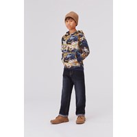 Andy is a pair of dark denim jeans in a relaxed, cool and comfortable fit. The adjustable waistband can be sized with an inner, adjustable elastic so they fit all children perfectly. Please note that sizes up to and including 134 have a snap and not a jeans button.