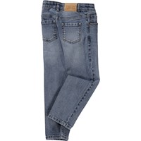 Blue jeans in a light wash. These jeans are constructed in a stretchy cotton, so active play will never be a problem. The jeans have side pockets, back pockets and are in a regular fit. The waist can be adjusted with inner elastic so they fit all children perfectly. Sizes 92-134 have a snap closure to make them easy to pull on and off. Sizes 140-176 have a regular jeans button..