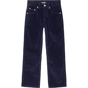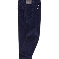 Dark blue trousers in corduroy with front and back pockets. The trousers have stretch and a regular fit.
