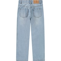 Light blue stretch jeans with light stitching. These jeans have pockets both at the front and back and a regular fit.The waist of the pants can be adjusted with an internal elastic, ensuring a perfect fit for all children. Sizes 92-134 have a snap button, making it easy to take the pants on and off, while sizes 140-176 have a regular jeans button.