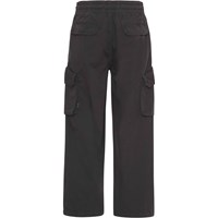 Argo is a pair of black cargo trousers with large pockets at the sides of the legs. Argo has front and back pockets as well as elastic and ties at the waist.