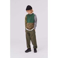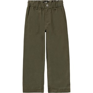 Aron is a pair of Molo's new trousers in army green. They have a relaxed, wide fit and an elastic waist. Aron has large patch pockets.