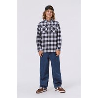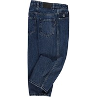 Molo's new, cool and oversized blue jeans with a peace sign on the pocket. These jeans are constructed in cotton, have side pockets, back pockets and are in an oversized fit. The waist can be adjusted with inner elastic so they fit all children perfectly. Sizes 92-134 have a snap closure to make them easy to pull on and off. Sizes 140-176 have a regular jeans button.