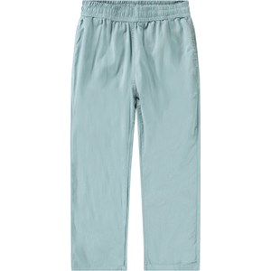 Dusty blue pants, made from organic cotton. These pants have pockets on the sides, back pockets, an elastic waist with an internal drawstring, ensuring they fit well all day and are comfortable to wear. Aster has a regular fit.