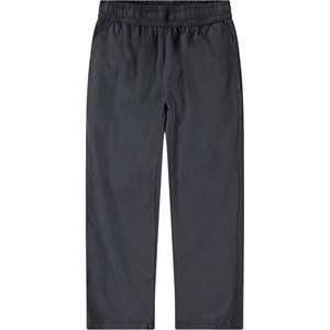 Dark grey pants, made from organic cotton. These pants have pockets on the sides, back pockets, an elastic waist with an internal drawstring, ensuring they fit well all day and are comfortable to wear. Aster has a regular fit.