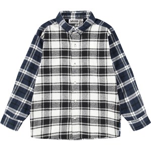 White, black and blue checkered shirt made of organic cotton with a button closure on the front, a button-down collar, long sleeves with cuffs, sewn-on chest pockets and it has a regular fit. The shirt has two different types of checks. Wear the shirt buttoned up or as an overshirt over a T-shirt.