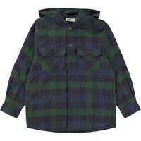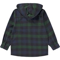 Blue and green plaid overshirt with a hood. This overshirt is constructed in 100% cotton, has a button front closure, patch pockets, hood, long sleeves and cuffs and is in a regular fit. It's perfect for cooler days. Wear it over a t-shirt, knit or sweatshirt for a cool look.