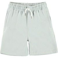 Adian is a pair of sweat shorts in a light pearl blue with ties at the waist.