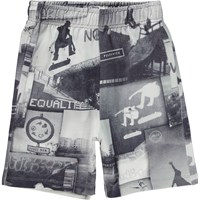 Adian is a pair of organic shorts with a print of various skaters. The shorts have an elastic waist and side pockets.