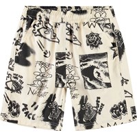 Knee-length shorts in organic cotton. The shorts have an elastic waist, pockets on the sides, a back pocket, and a loose, baggy fit. Beige with skate-inspired print and cool statements. Pair with a matching shirt for a cool outfit.