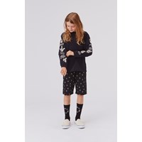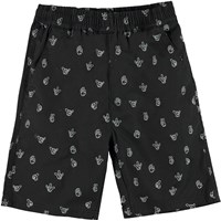 Avart is a pair of black shorts with a print of various small hand signs. The shorts have an elastic waist. Wear them with the matching shirt.