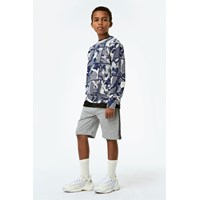 Axon is a pair of grey sweatshorts that are extremely comfortable. The shorts have a stripe on the sides and a single back pocket.
