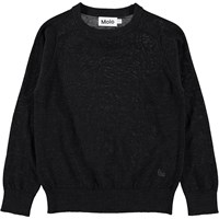 Black melange, lightweight wool 'Holiday' jumper with raglan sleeves, raw edges and rib at the neck, sleeves and bottom.