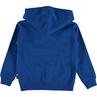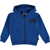 Sweatshirt with hood, zipper and front pocket. The sweatshirt has a patch with a text on the left chest.