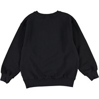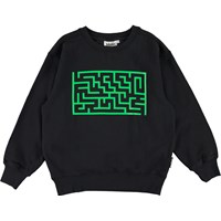 Find your way through the green labyrinth that is printed on the front of the Mann sweatshirt. Mann is a black sweatshirt with rib at the sleeves and bottom.