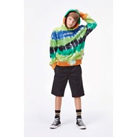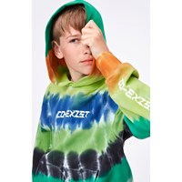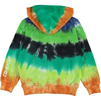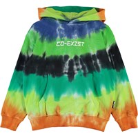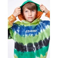 Matt is a multi-coloured tie-dye hoodie. It has a pouch pocket and 'Co-exist' printed on the front.
