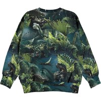 Mattis is a sweatshirt with a print of various dinosaurs.