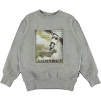Mattis is a grey sweatshirt with a print of a satellite on the front.