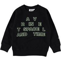 Take a trip through time and space in the black Mike sweatshirt that has glow in the dark lettering.