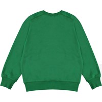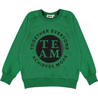 Mike is a green sweatshirt with the text 'Team' on the front.