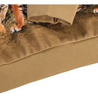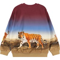 Sweatshirt made of soft, organic cotton with ribbed edges at the neck, sleeves, and bottom. The sweatshirt has a loose and relaxed fit with a tiger print that goes all the way around the sweatshirt which creates a beautiful symmetry.