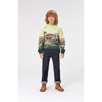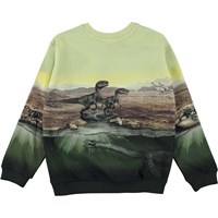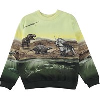 The "Dino Earth" print, on the Miksi sweatshirt, transports you back to a time where dinosaurs ruled the planet- on land, sea and in the air. Miksi has rib at the neck, wrists and waist.