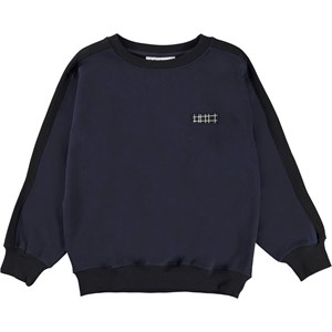Mir is a sweatshirt in two colours, where the front is dark blue and the back is black. Wear the sweatshirt with matching sweatpants.