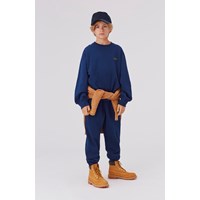 Mir is a blue sweatshirt with a Molo logo on one side of the chest. Wear the sweatshirt with the matching sweatpants.
