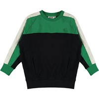 Miwo is a green and black sweatshirt with white details. Wear the sweatshirt with Molo's matching sweatpants for a sporty, comfortable look.