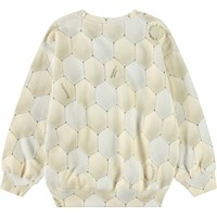 Beige and light grey sweatshirt in soft organic cotton with ribbed edges at the neck, sleeves, and bottom of the sweatshirt. The sweatshirt has a loose fit with an all-over print of the pattern on a football in light grey and beige colours.