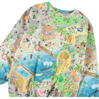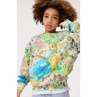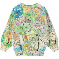 Multicoloured sweatshirt in soft organic cotton with ribbed edges at the neck, sleeves, and bottom of the sweatshirt. The sweatshirt has a loose fit with a pixelated all-over print of the real world, fun characters from Molo's collections, and lots of exciting stories that are fun to explore in the colourful universe.
