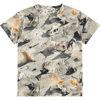 Slim fit T-shirt made of soft organic cotton with a ribbed neckline. The T-shirt has an all-over brown cat print.