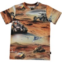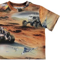 Ralphie is a t-shirt with an all-over print of Mars. The t-shirt has a round neck.