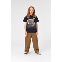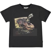 Rame is a black t-shirt, where the past and the present meet. The Dinosaurs are coming out of a computer screen towards you while you're gaming.