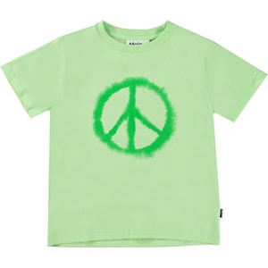 Green t-shirt in 100% organic cotton with a placement print on the front. The print is of a watercolour peace sign. The t-shirt has a round neck with a rib edge and is in a regular fit.