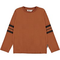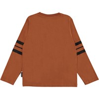 Ras is a long sleeve brown t-shirt with stripes in the middle of the sleeves.
