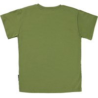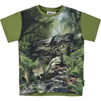 Rasmus is a green t-shirt with a dinosaur print on the front.