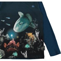 Dive down under the ocean's surface and see what's hiding in the print on the Reif top. There are large and small fish.