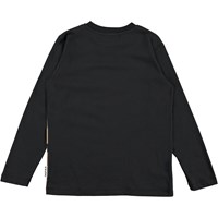 Reif is a long sleeve black top with a print of satellites that are flying around in space.
