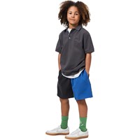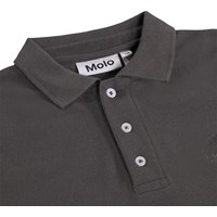 Grey polo shirt made of soft, organic cotton with a classic collar, button closure at the front and matching trim at the sleeves.The polo has a loose fit that gives a relaxed and comfortable look.