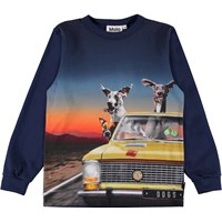 Things move quickly on the Rez top. When dogs take the steering wheel in the 'Canine Cruising' print, their tongues and ears are flapping in the wind. The top is in cotton and has long sleeves.