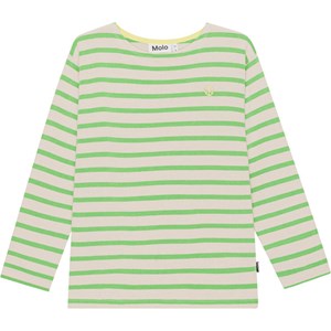 Rilder is a long sleeve top with green and off-white breton stripes in 100% organic cotton. Rilder has a cool, maritime look in a regular fit. There is a small, yellow peace embroidery on the front.