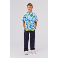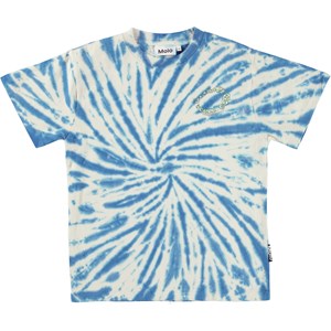Riley is a t-shirt with a blue and white tie dye print that creates a lovely spiral.