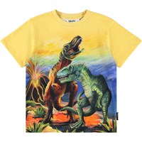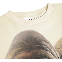 Beige T-shirt made of soft organic cotton with short sleeves and ribbed neckline. The T-shirt has a loose fit with a print of gorillas.