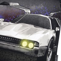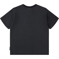 Black T-shirt made of soft organic cotton with short sleeves and a ribbed neckline. The T-shirt has a loose fit with a print of a certain race car.