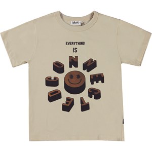 Beige t-shirt with a graphic front print in brown and black. The print conveys the message that we are all connected. This t-shirt is constructed in 100% cotton, has short sleeves, a round neck with rib and is in a loose fit.