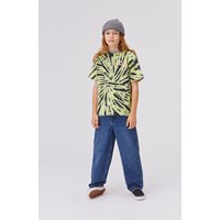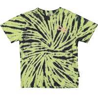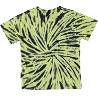Riley is a t-shirt with green and black tie dye print that creates a lovely spiral.