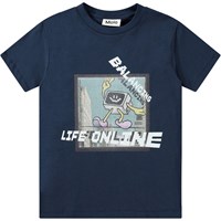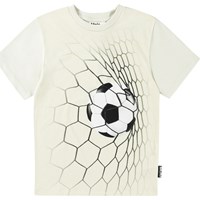 Off-white T-shirt in organic cotton with short sleeves, round neckline, and ribbed trim at the neck. The T-shirt has a loose fit and a placement print on the front. The print on the T-shirt depicts a football in the moment it zooms into the net, and you score a goal!