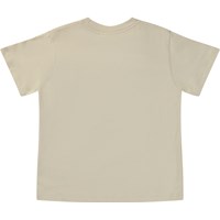 Beige t-shirt with a print in a retro style on the front, with spaceships landing on the dinosaurs' planet. This t-shirt is constructed in 100% cotton, has short sleeves, a round neck with rib and is in a loose fit.