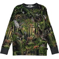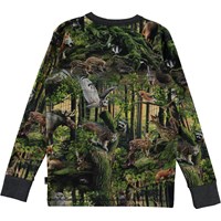 Rill is a long sleeve t-shirt with an all-over print of a forest. See how many of the forest's animals you can spot. Rill has a dark grey edge tape at the neck and sleeves.